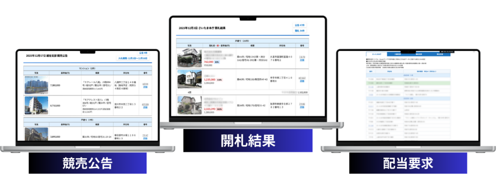 - 埼玉県内4庁全ての競売不動産情報を定額で提供